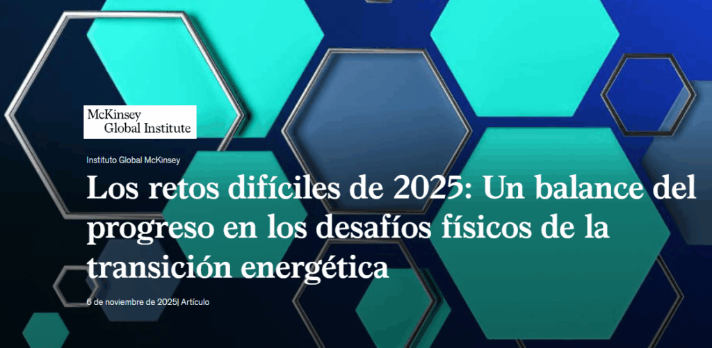 En 2024, el informe del McKinsey Global Institute, «Los retos: Navegando las realidades físicas de la transición energética», analizó la situación mundial de esta transformación física. Se constató que, a pesar de los avances significativos, la transición se encontraba en sus primeras etapas, con apenas un 10 % del despliegue necesario de tecnologías de bajas emisiones para 2050 alcanzado en la mayoría de las regiones.3La investigación identificó 25 desafíos físicos que deben superarse para que la transición tenga éxito, desde el desarrollo y la ampliación de nuevas tecnologías de bajas emisiones hasta la construcción de las cadenas de suministro y la infraestructura de las que dependen.