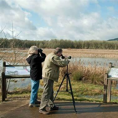 Observadores con binoculares exploran la vida de las aves en un entorno natural, una práctica que une bienestar emocional y turismo responsable / Pixnio