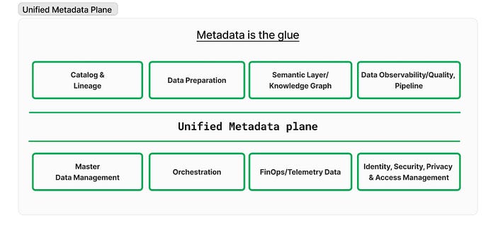 Iniciativas como Open Metadata y Open Lineage han intentado hacer converger los metadatos, pero aún se encuentran en las primeras etapas. El resultado de este escenario aislado es que cada producto de las categorías realiza su propio descubrimiento de datos, pero con una lente diferente. Sin embargo, este es un esfuerzo en vano, especialmente cuando una organización tiene múltiples productos implementados para diferentes personas.