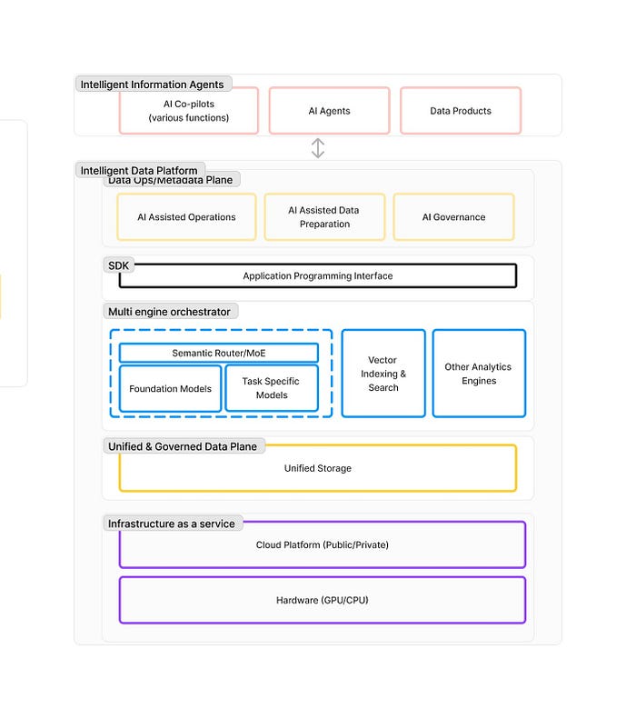Hoy en día, las plataformas de datos son en gran medida una pila de “sistemas de registro”, que reúnen datos de una variedad de bases de datos y aplicaciones empresariales en un repositorio común. El principal caso de uso actual de esta pila son los informes y el análisis y, en muy pocos casos, la automatización basada en datos. ¿Qué podría ser mejor que infundir inteligencia dentro de la plataforma de datos para acelerar la adopción de productos y aplicaciones de datos de IA en toda la empresa?