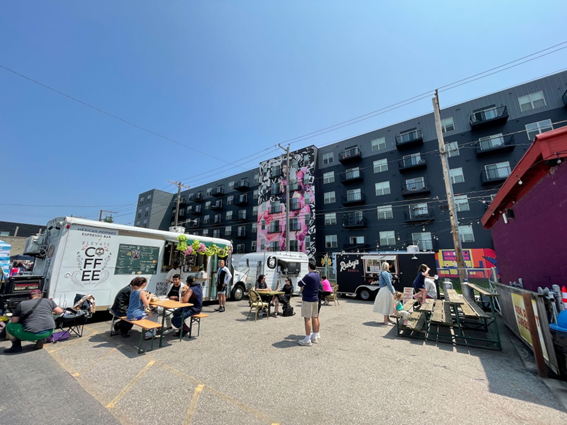 El Zócalo Food Park en Milwaukee, Wisconsin, atrae a los residentes locales durante todo el año con una amplia gama de ofertas culinarias, eventos, mercados y mesas libres. Crédito: Anne Tan-Detchkov, Proyecto para Espacios Públicos.