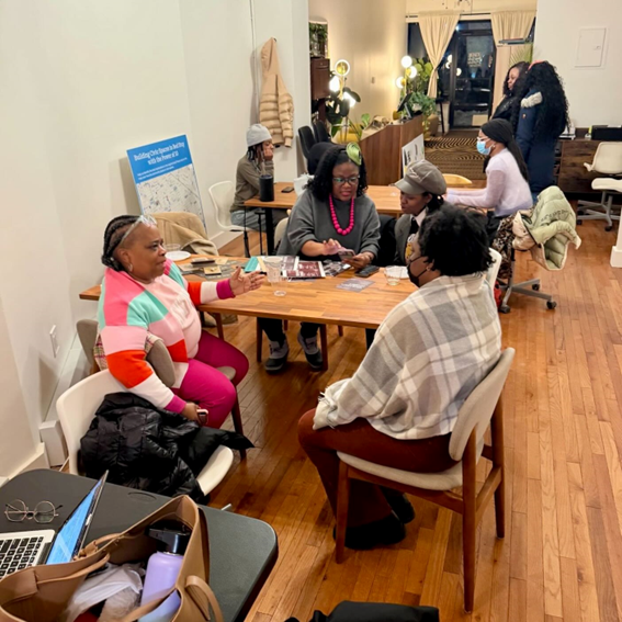 Gracias a una subvención para la creación de espacios comunitarios, la organización sin fines de lucro GrowHouse NYC logró crear el Santuario Cívico Marcus Garvey en Bed-Stuy, Brooklyn, Nueva York, como un centro temporal donde la comunidad puede reunirse, enseñar y organizarse sobre temas como la gestión territorial, la gobernanza y más. Fuente: GrowHouse Design + Development Group